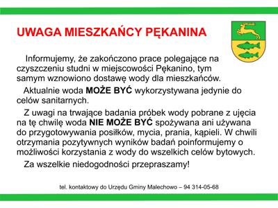 Urząd Gminy Malechowo informuje mieszkańców miejscowości Podgórki, że w dniu 26.11.2025 r. woda w godzinach nocnych będzie niezdatna do spożycia. Wodę będzie można spożywać w dniu jutrzejszym...